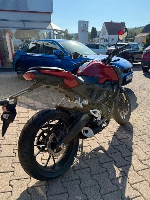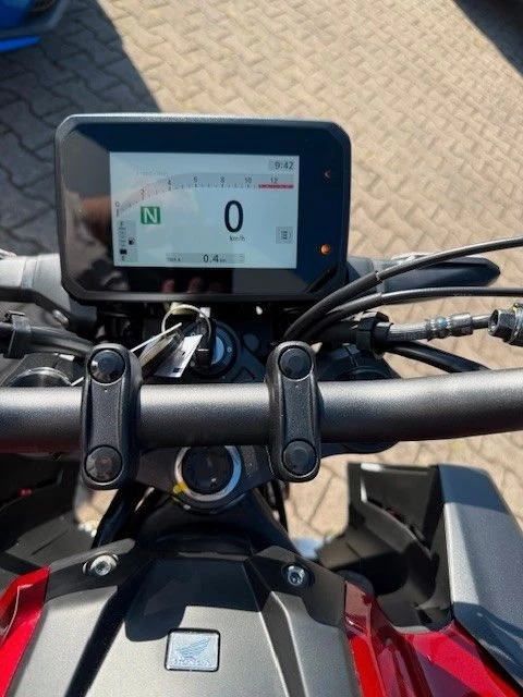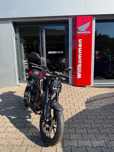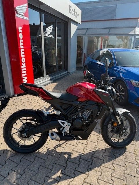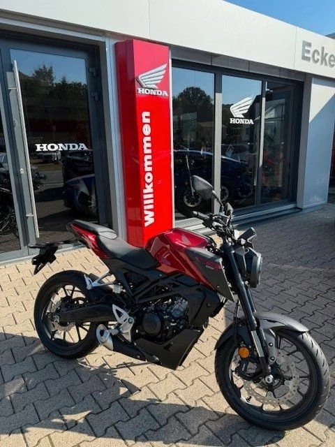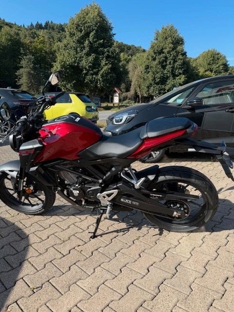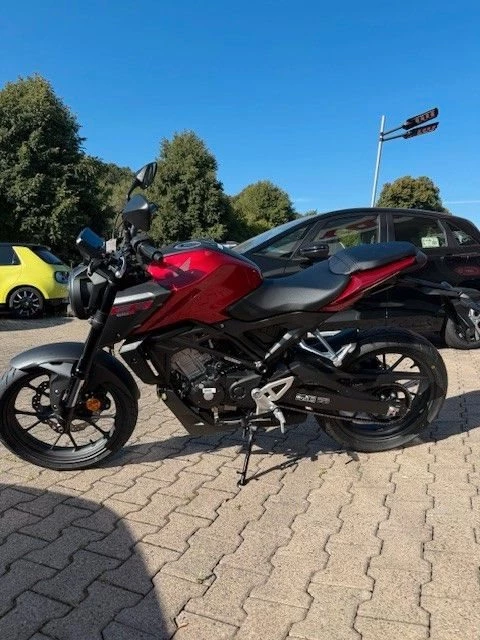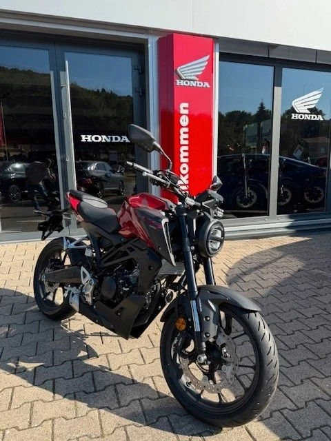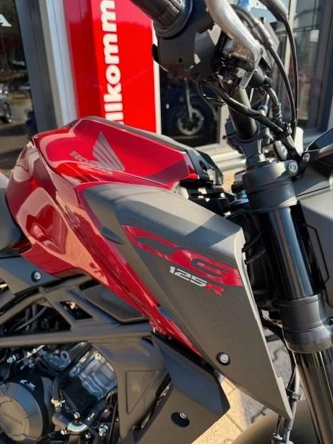 Die CB125R vereint Performance mit Style und bietet Einsteigern ein großartiges Fahr- erlebnis. Als kleine Schwester der CB1000R - und somit Mitglied der "Neo Sports Café"- Familie - ist ihr markantes Design ein echtes Statement: Minimalismus als Philosophie. Das Vertrauen in die CB125R wächst mit jeder Fahrt. Dank kompakter Abmessungen ist die CB125R leicht zu handeln, zusätzliche Big-Bike-Features machen den Einstieg in die Welt des Motorradfahrens perfekt.Der DOHC-Vierventil-Einzylindermotor erfreut seinen Fahrer mit spritzigen 11 kW (15 PS) und einem maximalen Drehmoment von 12 Nm; die Kraftübertragung erfolgt über ein sportlich abgestimmtes Sechsgang-Getriebe. Passend zum Hochleistungsmotor kommt die CB125R mit einer 41-mm-USD-Gabel vom Typ SHOWA SFF-BP - eine Gabel der Spitzenklasse. Ein Druckstufendämpfer in einem Gabelrohr und ein Federungssystem im anderen sorgen für hervorragende Dämpfungsleistung und reduzieren das Gewicht. Der Einsatz eines größeren Kolbens verbessert zudem das Fahrgefühl, die Dämpfung und die Kontrolle. Serienmäßige Fullsize-Reifen, ein radial montierter Bremssattel am Vorderrad sowie ABS-Management mit Inertial Measurement Unit (IMU) komplettieren das Angebot.Eine Neo Sports Café fällt auf. Vor allem der markante runde Scheinwerfer mit schlanker Ein- fassung inklusive Tagfahrlicht, das die Sichtbarkeit für andere Verkehrsteilnehmer erhöht. Die Blinker leuchten ebenfalls in LED-Technik. Ein besonders dünnes LCD-Display (nur 23,5 mm) zeigt Geschwindigkeit, Motordrehzahl, Kraftstoffstand sowie den (aktuell gewählten) Gang an.