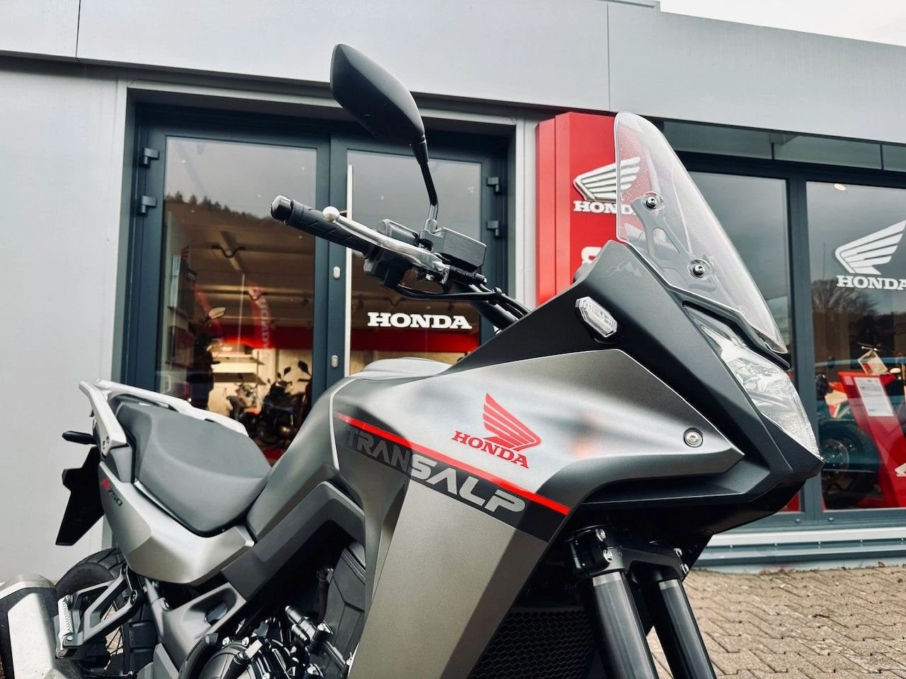 Der legendäre Allround-Tourer ist zurück. Wir haben die Transalp zur perfekten Gefährtin auf Abenteuern gemacht - wohin auch immer sie führen. Kein Teil zu viel. Design und Merkmale sind robust und zweckmäßig. Im Stadtverkehr, auf der Autobahn oder auf endlosen Trails - die schlanke Mittelsektion und die elegante aerodynamische Verkleidung geben Ihnen Freiheit und Windschutz.Dieses Motorrad ist für lange Touren gebaut. Im Mittelpunkt steht echter Komfort - für Fahrer und Sozius. Vom Trail im Gelände bis hin zu Feldwegen absorbiert das SHOWAFahrwerk mit hohem Federweg Stöße. Die Kombination aus 21-Zoll-Vorder- und 18-Zoll- Hinterrad gewährleistet auch in unwegsamem Gelände Fahrkomfort. Mit einer Sitzhöhe von 850 mm und einem Gewicht von 208 kg ist die Transalp selbst bei Schrittgeschwindigkeit leicht zu handhaben. Die entspannte, aufrechte Fahrposition ermöglicht gute Sicht und natürlichen Komfort. Verkleidung und Scheibe sind kompakt und hochgradig funktional. Die sorgfältig ausgearbeitete Aerodynamik erhöht die Stabilität und reduziert Windgeräusche und Luftverwirbelungen bei hoher Geschwindigkeit.Die Leistungsdaten sind zweifellos beeindruckend: 67,5 kW (92 PS) und ein Drehmoment von 75 Nm. Der wichtigste Unterschied ist jedoch, wie der völlig neuartige 755-cm3-Parallel- Zweizylindermotor mit acht Ventilen seine Leistung bringt. Unsere patentierte "Air Vortex"- Ansaugtechnologie sorgt für mehr und geschmeidigere Dynamik im unteren und mittleren Drehzahlbereich, während die spezielle Ni-SiC-Beschichtung der Zylinder die Reibung minimiert und für mehr Leistung bei hohen Drehzahlen sorgt. Vier voreingestellte Fahrmodi - Gravel, Sport, Standard und Rain - stimmen Motorleistung, Bremsen, Honda Selectable Torque Control (HSTC), Wheelie-Control und ABS auf die Bedingungen und unterschiedliches Terrain ab. Der User- Modus dient der individuellen Einstellung der einzelnen Parameter, also auch ABS-Abschaltung hinten für Fahrten im Gelände. Die Steuerung erfolgt über das 5-Zoll TFT-Farbdisplay. Dank der Honda Sprachsteuerung für Smartphones bleiben Sie unterwegs in Kontakt. Die komplette Beleuchtung verwendet LED-Technik - auch für die Blinker, die mit der Notstoppsignal-Funktion ESS (Emergency Stop Signal) bei Notbremsungen den nachfolgenden Verkehr warnen.Außerdem können Sie die Transalp mit einer Auswahl an Zubehörpaketen ganz nach Ihren Wünschen gestalten: Adventure, Komfort, Rallye, Urban und Touring.