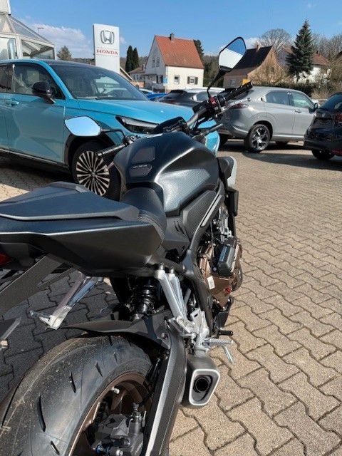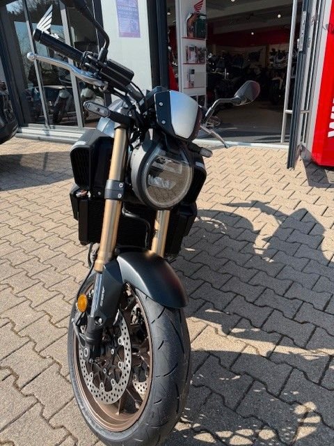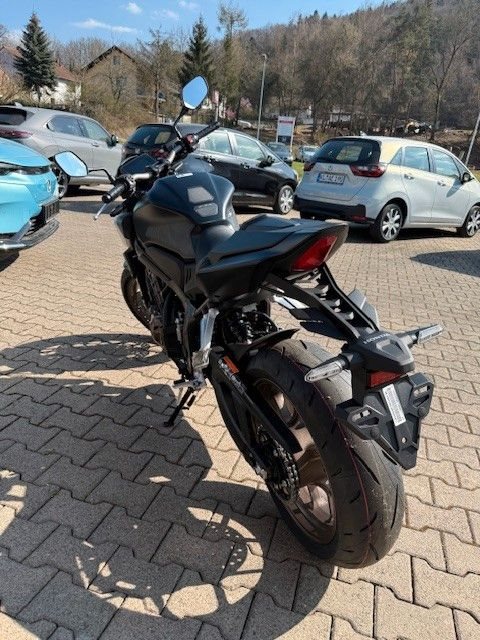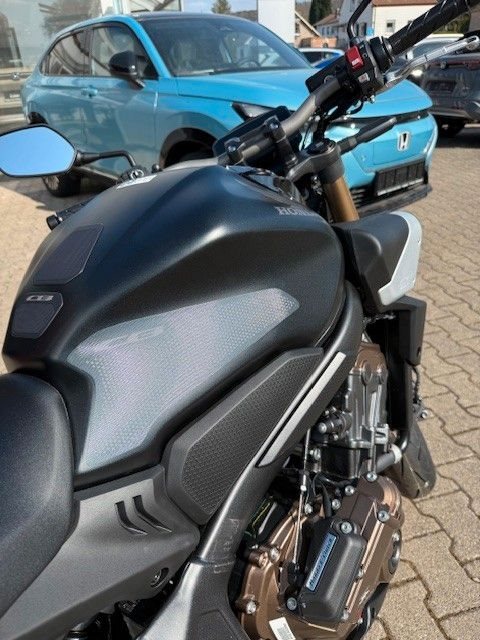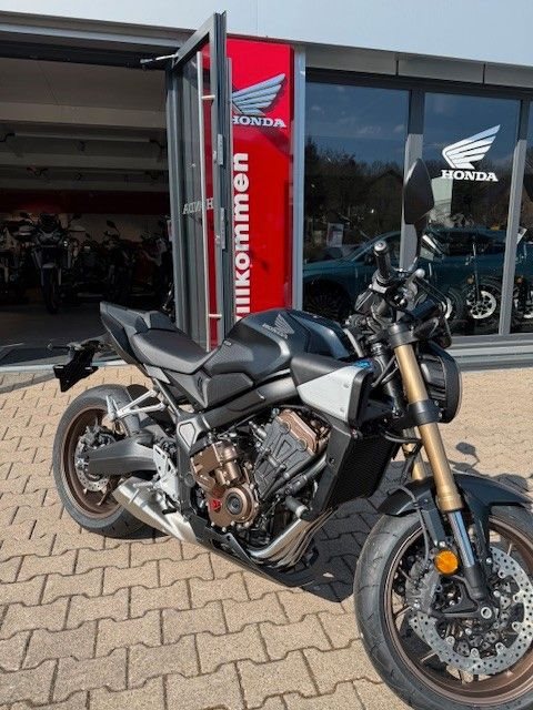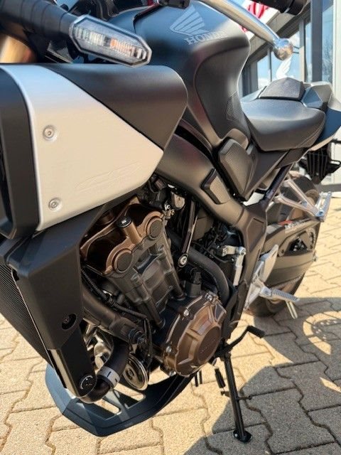 Die CB650R gefällt mit schlankem, stromlinienförmigem Design. Der ultrakompakte, kraft- volle Style zitiert den Retro-Minimalismus der CB1000R Neo Sports Café: geschwungene Linien mit klar definierten Kanten, markanten Seitenverkleidungen und einer eleganten Kenn- zeichenhalterung.Gebaut, um gefahren zu werden. Der DOHC-Vierzylinder-Reihenmotor mit 16 Ventilen, das kurz übersetzte Getriebe und die gleichmäßige Leistungsentfaltung begeistern mit überra- gender Beschleunigung - dazu der charakteristische Sound im hohen Drehzahlbereich, der süchtig macht. Als dezente Reminiszenz an die Vierzylinder-Geschichte von Honda verlaufen die vier Auspuffrohre parallel um die Vorderseite des Motors herum. Eine Anti-Hopping-Kupp- lung erleichtert kontrolliertes Hochschalten und auch harte Gangwechsel. Die Honda Selec- table Torque Control (HSTC) gewährleistet perfekte Traktion am Hinterrad. Honda Händler können den Motor gemäß Anforderungen für den A2-Führerschein problemlos auf 35 kW (48 PS) drosseln. Die Rückrüstung auf die volle Leistung ist ebenso einfach.Die einstellbare 41-mm-USD-Gabel von SHOWA in SFF-BP-Ausführung (Big Piston mit Separate Fork Function) spricht sanft an und vermittelt ein hervorragendes Gefühl für das Vorderrad. Das Fahrwerk ist perfekt mit dem steifen Rahmen und der agilen Geometrie der CB650R ausbalanciert. Reifen mit den Abmessungen 120/70-17 vorn und 180/55-17 hinten bieten Grip auf Superbike-Niveau. Die Voll-LED-Beleuchtung unterstreicht das hochwertige, zeitlose Styling. Markante Doppelscheinwerfer leuchten jede Kurve perfekt aus. Die leicht ablesbare LCD-Instrumententafel informiert über gewählten Gang und Schaltpunkt. Zusätzli- che Sichtbarkeit bringt die Notstopp-Signalfunktion ESS: Abrupte Bremsmanöver aktivieren automatisch die Warnblinkanlage vorn und hinten, um andere Verkehrsteilnehmer zu warnen.