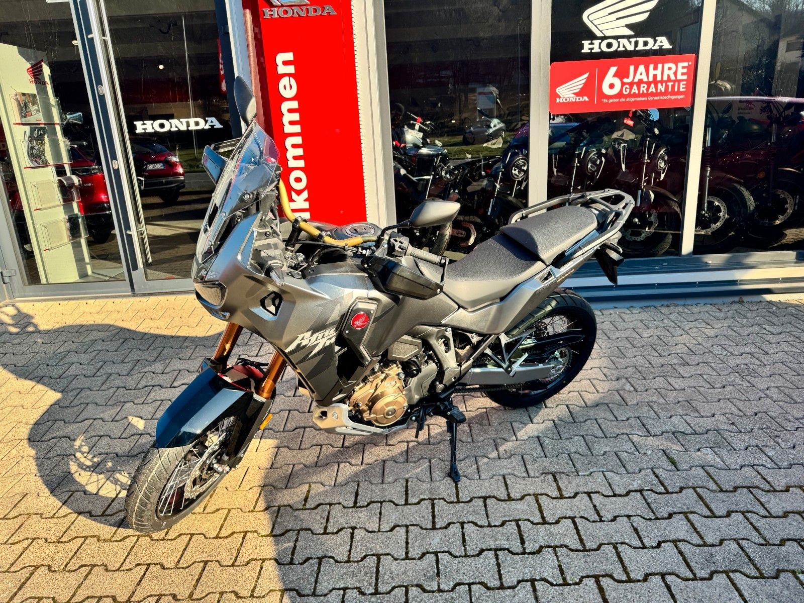 Je größer die Herausforderung, desto größer die Belohnung. Die CRF1100L Africa Twin baut auf Erfahrungen auf, die wir über Jahrzehnte bei Wüsten-Rallyes gesammelt haben. Performance und Zuverlässigkeit überzeugen auf ganzer Linie.Der Zweizylinder zeichnet sich durch kraftvolle Performance aus: 1100 cm3, 75 kW (102 PS) und 105 Nm. Herzstück der Africa Twin ist eine 6-achsige Inertial Measurement Unit (IMU), die kon- tinuierlich dynamische 3D-Bewegungen in Echtzeit überwacht. Mit den gewonnenen Werten steuert sie die 7-stufige Honda Selectable Torque Control (HSTC), die 3-stufige Wheelie-Control sowie die Motorleistung und die Motorbremse. Zur präzisen Anpassung an die Verhältnisse stehen dem Fahrer vier vorgegebene Fahrmodi und zwei individuell konfigurierbare User- Modi zur Verfügung. Das Kurven-ABS bringt erhöhte Sicherheit auf der Straße und verfügt über Offroad-Einstellungen, wozu auch die Abschaltung des hinteren ABS gehört. Das optionale Doppelkupplungsgetriebe (DCT) glänzt mit supersanftem Schalten, sowohl automatisiert als auch bei manuellen Gangwechseln. Der Tempomat ist serienmäßig.Der Rahmen aus Stahl und die Schwinge im Stil der CRF450R aus Aluminium sind für bestes Handling leicht und zugleich steif konstruiert. Die 45-mm-Upside-Down-Gabel von SHOWA führt das Vorderrad präzise, wobei Federvorspannung sowie Dämpferzug- und -druckstufe einstellbar sind. Am Hinterrad liefern SHOWA Dämpfer und Pro-Link-Umlenkung feinfüh- lig-progressives Ansprechverhalten. Zug- und Druckstufen-Dämpfung lassen sich hier ebenso gezielt anpassen, die stufenlose Vorspannung der Feder sogar über ein praktisches Drehrad. Ein schlichter schwarzer Gepäckträger komplettiert die Serienausstattung.Das 6,5-Zoll TFT-Touchscreen-Farbdisplay für intuitive Steuerung lässt sich über Apple CarPlay, Android Auto und Bluetooth mit Smartphones koppeln, wodurch die Nutzung von Navigation, Telefonie, Nachrichten und Musik möglich ist. Die LED-Doppelscheinwerfer leuchten den Weg optimal aus; dank DRL-Tagfahrlicht wird man zudem besser gesehen.Mit einer Auswahl an Zubehörpaketen können Sie die Africa Twin ganz nach Ihren Wünschen gestalten.